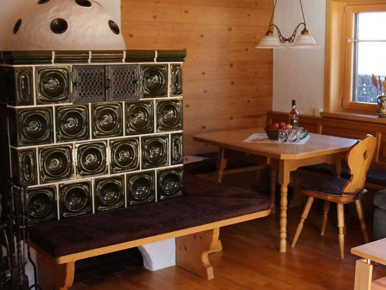 🔹 Wohnzimmer mit Kachelofen und Schlafsofa