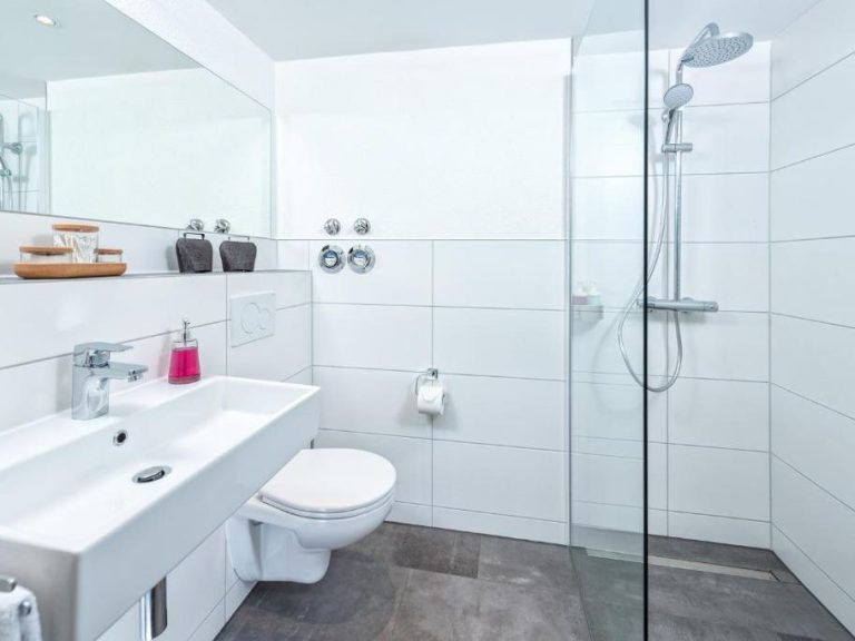 🔹 Badezimmer mit Rainshower Dusche, Spiegelschrank mit LED, Fön